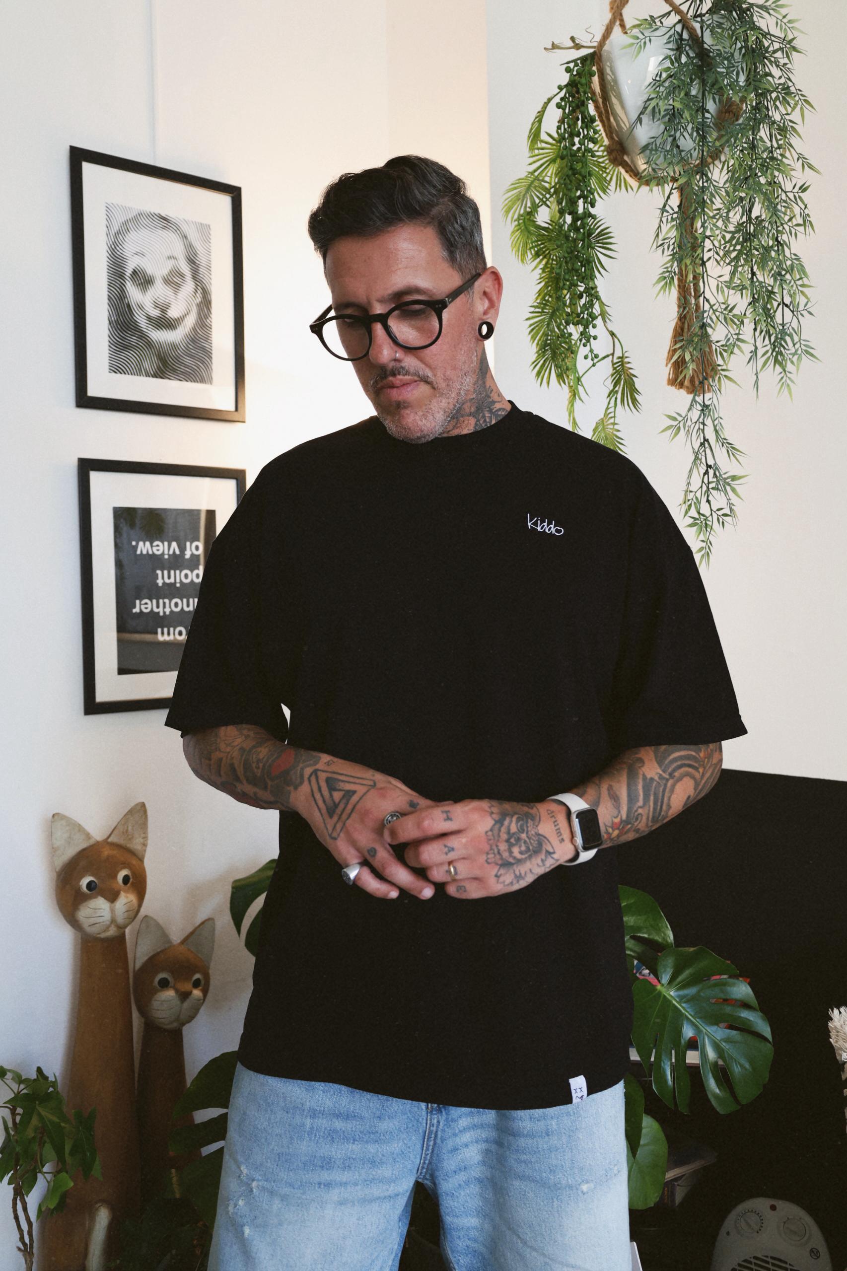 T-shirt oversized em Jersey Duplo 250 grs/mt2. Bordado com relevo na frente e estampado digital nas costas.